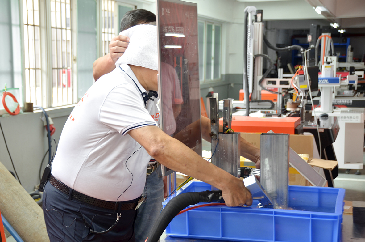 白老師操控著鑫全利激光手持激光焊,為我們展示了技藝高超的水下盲區釬焊,在水下激光釬焊前期白老師就不止一次的說過,水下激光釬焊對手持激光設備的品質要求其為苛刻,工欲善其事,必先利其器。