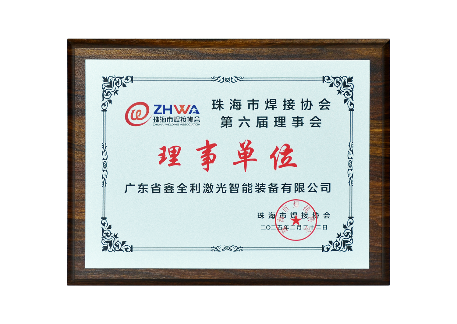 珠海市焊接協會第六屆慶典大會于2月22日-23日在珠海成功舉辦。會上,經投票表決,廣東省鑫全利激光智能裝備有限公司當選珠海市焊接協會理事單位。
