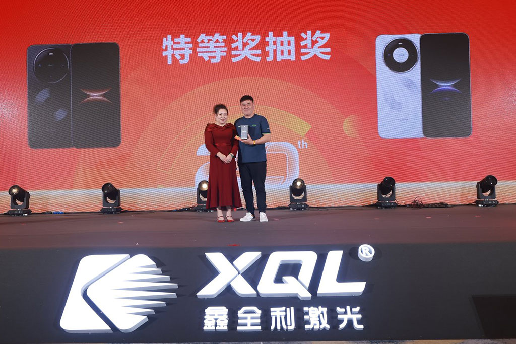 晚宴期間,最受關注的當屬頒獎典禮與抽獎環節。鑫全利激光為 31 家戰略合作伙伴、8 名 “金鉆獎” 獲得者及優秀供應商頒發榮譽證書,以表彰其在合作中的突出貢獻。隨后的抽獎環節更是將氛圍推向高潮,從五等獎到特等獎,50 名、20 名、10 名、3 名、2 名、1 名幸運嘉賓依次產生,豐厚的獎品讓現場掌聲不斷。