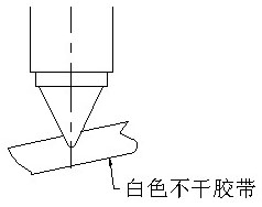 3、點(diǎn)射完畢后,取下膠帶,注意保持方向,方便確定出光偏離位置。(如果激光光束偏離噴嘴距離過大,則在膠帶無法看出任何痕跡)。