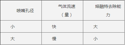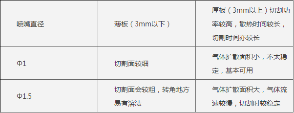 (4)、噴嘴孔徑,噴嘴孔徑大小對切割質(zhì)量與穿孔質(zhì)量有關(guān)鍵的影響: