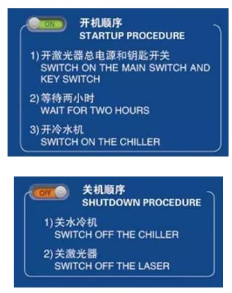 每次激光切割機重新開機時,需要按照下面正確的開關機順序來操作